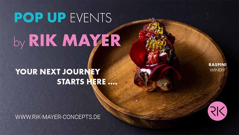 Lassen Sie sich von rik mayer aus dem Alltag abholen, entdecken Sie eine Welt des puren Geschmacks. Jeder Gang erzählt bei uns seine ganz eigene Geschichte. Von Menschen, von Begegnungen, vom Leben – bunt, vielfältig und immer überraschend. Inspiriert von den betörenden Düften würziger Currys, dem quirligen Treiben schwimmender Märkte in Thailand, den saftigen Farben Vietnamesischer Gewürzhandlungen und der ruhigen Frische Japans.